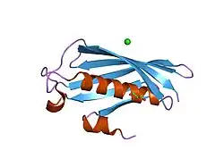 ![]() Cartoon representation of the molecular structure of the crystal structure of TT0310 protein from Thermus thermophilus HB8 (PDB: 1WLU) [1] | |||||||||