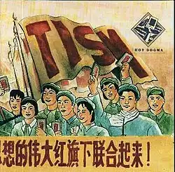 The Chinese on the cover (Chinese: 无产阶级革命派在迪思想的伟大红旗下联合起来!) translates into "The unification of the proletariat under the banner of TISM".