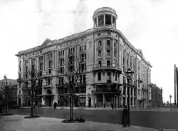 The Hotel Bristol was constructed from 1899 to 1900 on the site of the Tarnowski Palace by a company whose partners included Polish pianist Ignacy Jan Paderewski. A competition was held for the design of the building, and architects Tadeusz Stryjeński and Franciszek Mączyński won with their Art Nouveau design. However the builders decided to change the style to a Neo-Renaissance design, and brought in architect Władysław Marconi to design the final hotel. Some of its interiors were designed by the noted Viennese architect Otto Wagner Jr. The cornerstone was laid on April 22, 1899 and the hotel was dedicated on November 17, 1901 and opened on November 19, 1901.[4] Among the notable features of the newly-built hotel was the country's first elevator.[5] The hotel also housed the photo studio of Jadwiga Golcz[6] which was frequented by many well-known artists of the time.[7]