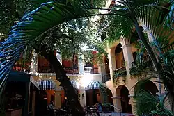 In the 1990s, El Convento underwent a $14 million renovation[2] by a team led by Hugh Andrews and Jorge Rosselló, who also remodeled other hotels such as La Concha, and the Condado Vanderbilt Hotel. It was rechristened as Hotel El Convento, a 4-star small luxury hotel with five stories, a central courtyard where a 300-year-old Níspero fruit tree still stands, a pool and Jacuzzi on the fourth-floor terrace, and great views of Old San Juan, maintaining the same high standard of luxury and style. Other notable present-day features of this boutique-style hotel include a 24-hour fitness center, a daily manager's wine and cheese reception, Patio del Níspero open-air restaurant,[3] 24-hour hospitality bar, five versatile meeting rooms, library, business center, herb garden, a beach club featuring beach privileges in Condado and Isla Verde beaches, and more.