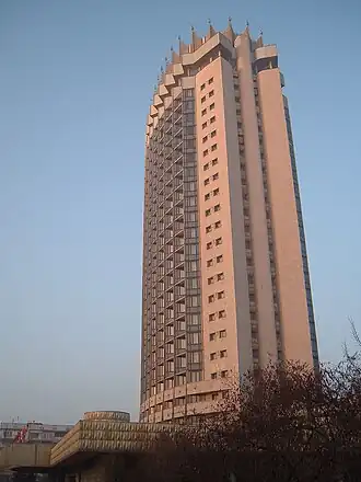 Hotel Kazakhstan (Kazakh: Қазақстан Қонақ Үйі, romanized: Qazaqstan Qonaq Üiı, Russian: Гостиница Казахстан) is the third-tallest building in the city of Almaty, Kazakhstan. It is 102 m (335 ft) tall,[1] with 26 floors.[2] It is situated in the southern center of Almaty. It is located on Dostyq Avenue, a major road in the east part of the city which runs all the way from Medeo to Panfilov Park, in the northern part of town.