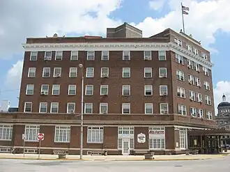 Hotel LaFontaine is a historic hotel building located at Huntington, Huntington County, Indiana. It was built in 1925, and consists of a six-story central pavilion with five-story flanking wings. It is of steel frame and hollow-tile construction and sheathed in brick. The building is in the Colonial Revival style. The lobby is designed to resemble a Spanish courtyard and the basement houses an Egyptian inspired swimming pool that opened in 1927. The hotel is named for Francis La Fontaine. It housed a hotel until 1974.[2]: 2–3