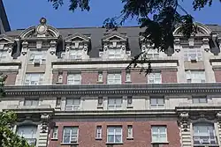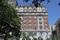 On the third through ninth stories, there were about 31 rooms on each floor, along with 18 private bathrooms and two shared bathrooms.[19] There were 17 suites per floor, each of which had one to three rooms.[18] The tenth floor contained bedrooms for the servants, housekeeper, and housekeeping assistants, in addition to public baths; there was a roof garden above the building. In addition, each floor was served by a freight lift, two passenger elevators, and a mail chute.[19] After a renovation in 1980, the building had 134 apartments.[21] These units were composed of 31 studio apartments and 103 one-bedroom units. Each of the apartments' bathrooms has emergency buzzers, and about one-tenth of the apartments are set aside for disabled residents.[22]