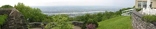 The Hotel Petersberg is a hotel and official guest house of Germany, termed the "Bundesgästehaus" (the official title being Gästehaus der Verfassungsorgane der Bundesrepublik Deutschland). It is located on the Petersberg, a prominent mountain of the Siebengebirge near Bonn, Germany. With a height of 331 metres (1,086 ft), it overlooks the cities of Königswinter, on the right bank of the Rhine river, and Bonn on the opposite side.