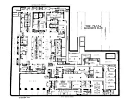 There were originally laundry rooms in the basement and on floor 18.[41][53] When the hotel opened in 1907, the basement also contained a grill room, kitchen, various refrigeration rooms, and amenities such as a Victorian-style Turkish bath and a barber shop.[36][54] Originally concealed within the mansard roof were the housekeepers' quarters and maids' dormitories; the eighteenth floor had carpentry, ironing, and tailors' departments.[55] The spaces on floor 18 had become offices by the late 20th century.[56]