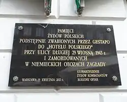 - ^ a b c d e f g h i j "The 70th anniversary of the liquidation of Hotel Polski - Jewish Historical Institute". Jewish Historical Institute. 2013. Archived from the original on 2020-08-01. Retrieved 2018-08-27.