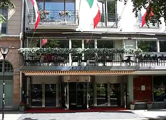 The hotel is the site of the former Hotel Aston and the Rival cinema, which were acquired in 2002 by Benny Andersson, who had the facilities rebuilt in 2002 to 2003, and officially opened on September 1, 2003.[3] Originally, the property's cinema was inaugurated in 1937 as Ri-Teatrarna's eleventh cinema; it was their largest movie palace with 1218 seats. In 1944, Finnish partisans used the theater to sort and microfilm intelligence material carried out to Sweden in the final stages of the Continuation War.