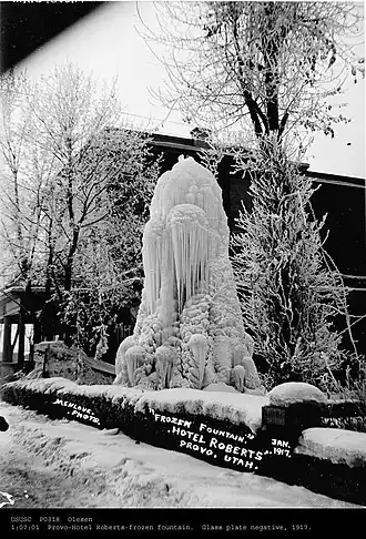 ![]() Frozen fountain in the central courtyard of Hotel Roberts, January 1917 | |