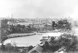 Overlooking the Pechersk Gate from the south was an offspur of the Pechersk plateau with two roads on both sides linking the Pechersk with old Kyiv. One of which, modern Institutska Street, was known since days of Kievan Rus' as the Ivanovo road and the other (modern Horodetska) lead to a large market that was to the south. A beautiful Linden wood covered the surrounding hills forming a picturesque view from the city walls.