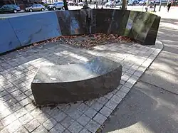 The Hotel Vendome Fire Memorial commemorates victims of the Hotel Vendome fire. It is installed along Boston's Commonwealth Avenue Mall, in the U.S. state of Massachusetts.[1][2] The work was designed by the artist Ted Clausen and landscape architect Peter White.[3] A group of firefighters originally proposed the memorial in 1982, but it was not initially approved by the Boston Arts Commission. The rejected proposal led to claims that the affluent residents of Back Bay had thwarted the proposal out of snobbery, regarding the design as "tacky."[4] The Boston Globe columnist Mike Barnicle attributed the obstruction to the "elitism and self-importance" of those in the neighborhood.[5] The design was finally approved in 1995 and ground was broken the following year.[3]