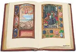 Noteworthy features of these miniatures are their three-dimensional realism and great sophistication, particularly those in the Passion cycle. The faces charged with emotion and the lively realism of the illuminated scenes make this manuscript one of the most outstanding works of Flemish art.