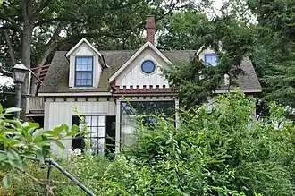 The House at 2212 Commonwealth Avenue, in the Auburndale section of Newton, Massachusetts, is a rare local example of domestic Gothic Revival architecture. The two story wood-frame house was built c. 1845, and is distinguished by its board-and-batten siding, oriel window, crenellated porch decoration, and bracketing in the eaves. It appears to be based on one of the panel's in Andrew Jackson Downing's The Architecture of Country Houses, which espoused the style.[2]