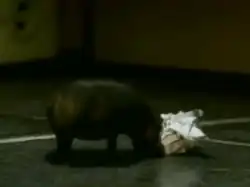 The spot shows footage and describes the behaviour of the "North American house hippo", a fictional animal found "throughout Canada, and the eastern United States".[3] The animal is described as sleeping for 16 hours per day, and enjoying a diet of raisins, chips and "crumbs from peanut butter on toast".[4] The hippo is shown foraging in a kitchen, confronting a house cat, and making a nest from lost mittens to go to sleep.[5]