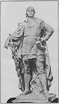 Albert the Bear was the first significant family member and the most prominent Askanier in the Middle Ages. A contemporary and rival of Henry the Lion (Welfs) and Conrad the Great (Wettins), he significantly advanced the German settlement of Slavic border marks and founded the Margraviate of Brandenburg on the territory of the former Nordmark. He briefly served as Duke of Saxony before becoming Margrave of Brandenburg, establishing his family's power in the Saxon eastern marches. His extensive territorial possessions were divided among his sons Otto, Herman, Bernhard, and Adalbert. This created the four main Askanier branches at the time: Brandenburg (until 1320), Weimar-Orlamünde (until 1486), Saxe-Wittenberg (until 1422), Saxe-Lauenburg (until 1689), and Anhalt (to the present). Albert is referred to as a Count of Aschersleben, indicating that the title "Counts of Aschersleben" emerged in the 12th century. He was first documented as comes Asscherslovensis on August 8, 1147, during a court session he presided over.[13] Whether Albert used this title himself is unclear, but he referred to himself as Margrave of Brandenburg in a document dated October 3, 1157 ("Adelbertus dei gratia marchio in Brandenborch").[14] The epithet "the Bear" was used in contemporary sources.[15] Albert the Bear died in November 1170 and was almost certainly buried in the Ballenstedt house monastery. The bear is the heraldic animal of Anhalt.[16] His son Bernhard used various Latin variants of Count of Aschersleben and later Duke of Saxony. The Gelnhausen Charter of 1180 included the division of the Stem Duchy of Saxony. In this arrangement, Bernhard was enfeoffed with the eastern part, which continued to bear the name Saxony. He received the ducal title the following year after the Erfurt Reichstag.