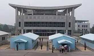 The House of Freedom (Korean: 자유의집; RR: Jayuuijip) is a four-story building located in the southern part of Panmunjom (Joint Security Area). It stands opposite to its North Korean equivalent, the Phanmun Pavilion. It is located 130 metres (430 ft) southwest of the Peace House in the south of Panmunjom. The Inter-Korean House of Freedom was rebuilt on 9 July 1998 after demolition of the old house of freedom. The building served as the venue for a one hour meeting between Donald Trump and Kim Jong-un as part of the 2019 Koreas–United States DMZ Summit.[1][2]