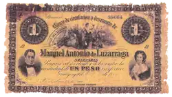On banknotes printed in London in 1863 by the Bank of Luzarraga, portraits of Manuel Antonio de Luzárraga and his wife Francisca Rico Rocafuerte are present.