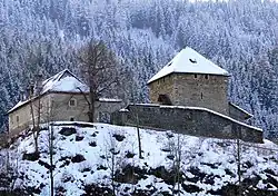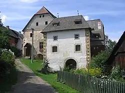 In 1599, the Schwarzenbergs were elevated to Imperial Counts, and the family was later raised to princely status in 1670.[1] In 1623 came the Styrian Dominion of Murau into the Schwarzenberg family due to the marriage of Count Georg Ludwig of Schwarzenberg (1586–1646) with Anna Neumann von Wasserleonburg (1535–1623). Furthermore, the House of Schwarzenberg acquired extensive land holdings in Bohemia in 1661 through a marriage alliance with the House of Eggenberg. In the 1670s, the Schwarzenbergs established their primary seat in Bohemia and, until 1918, their main residence was in Český Krumlov, Bohemia (now in Czech Republic).