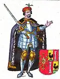 The first recorded members of the family are two brothers, Gerard I Flamens and Rutger, sometimes called Rutger von Antoing[1].The first held the main town of Wassenberg, and the other established himself at Kleve[2] in the medieval Hettergau. Rutger or one of his close descendants was already elevated to countship in second half of the 11th century.[3] Despite that, 1092 is still the most commonly used date to refer to a ruler of Cleves.[1]