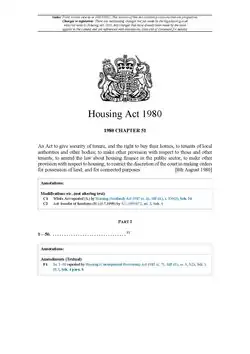 | Text of the Housing Act 1980 as in force today (including any amendments) within the United Kingdom, from legislation.gov.uk. | |