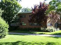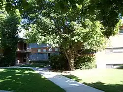 Brigham Young University's Foreign Language Student Residence (FLSR) program was established in 1978 as a three-house off-campus residence center dedicated to the study of Russian and Italian.[1] Due to the success of these houses, the program expanded from three houses to one specially designed complex in 1991.[2] Each apartment houses 6 students: 5 students who are studying the same language and a native speaker. Each student agrees to only speak the apartment's assigned language during the school year while in the apartment.[1]
