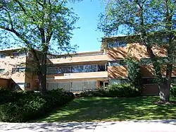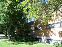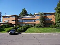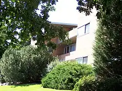 In 1946, during the postwar BYU growth, President McDonald purchased forty-eight buildings from a nearby Air Force station in order to house students. These buildings were called Wymount Village, and housed both married and single students until 1962.[60] Wymount Village was replaced by Wymount Terrace in that year, intended solely for students with young families. The 24 building complex contains a total of 462 apartments of varying sizes.[61]