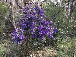 - ^ a b "Karri Blue Bush (Hovea elliptica)". Gardenworld. Retrieved 21 September 2018.