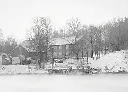 The island has also been used for military installations, and former military buildings and artillery remain on the island. When Denmark-Norway became involved in the Napoleonic war, two cannon batteries were built to defend Oslo and Akershus Fortress in 1808 (again using the monastery ruins as a quarry). Four depots for gunpowder were built in 1826 on the high points of the island to ward off intruders, and a fifth was built in 1867. On the eastern half of the island is a Victorian house, popularly known as the "Laboratory". It was used by Director of Armory Ole Herman Johannes Krag, co-inventor of the Krag–Jørgensen rifle in the late 19th century.
