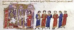 ![]() Hovhannes submits to Basil II, miniature from the Madrid Skylitzes | |