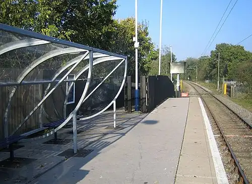 How Wood railway station is in the village of How Wood, Hertfordshire, England. It is the fourth station on the Abbey Line, 4+1⁄2 miles (7.2 km) from Watford Junction. Like all the other stations on the branch (except Watford Junction), it is a simple unstaffed halt.