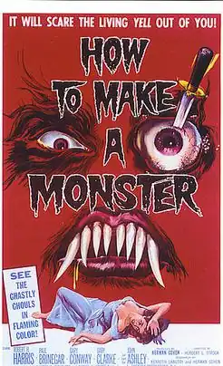 How to Make a Monster is a 1958 American horror film drama. It was produced and written by Herman Cohen, directed by Herbert L. Strock, and starring Gary Conway, Robert H. Harris, Paul Brinegar, Morris Ankrum, Robert Shayne, and John Ashley. The film was released by American International Pictures as a double feature with Teenage Caveman. It is notable for its inclusion of props and studios that created actual sci-fi horror movies.
