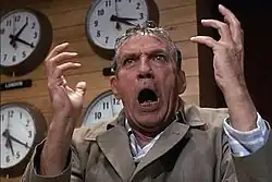 The image of Beale in a khaki raincoat with his wet hair plastered to his head, standing up during the middle of his newscast saying, "I'm as mad as hell, and I'm not going to take this anymore!" is often listed as one of the most iconic in film history, and the aforementioned line ranked #19 on the American Film Institute's 2005 list of the 100 greatest American movie quotes.[4]