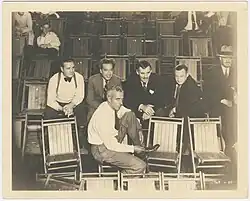 Hawks's first all-sound film was The Dawn Patrol, based on an original story by John Monk Saunders and (unofficially) Hawks. Reportedly, Hawks paid Saunders to put his name on the film, so that Hawks could direct the film without arousing concern due to his lack of writing experience.[44] Accounts vary on who came up with the idea of the film, but Hawks and Saunders developed the story together and tried to sell it to several studios before First National agreed to produce it.[45] Shooting began in late February 1930, about the same time that Howard Hughes was finishing his World War I aviation epic Hell's Angels, which had been in production since September 1927. Shrewdly, Hawks began to hire many of the aviation experts and cameramen that had been employed by Hughes, including Elmer Dyer, Harry Reynolds and Ira Reed. When Hughes found out about the rival film, he did everything he could to sabotage The Dawn Patrol. He harassed Hawks and other studio personnel, hired a spy that was quickly caught, and finally sued First National for copyright infringement. Hughes eventually dropped the lawsuit in late 1930—he and Hawks had become good friends during the legal battle. Filming was finished in late May 1930, and it premiered in July, setting a first-week box office record at the Winter Garden Theatre in New York. The film became one of the biggest hits of 1930.[46] The success of this film allowed Hawks to gain respect in the field of filmmaking and allowed him to spend the rest of his career as an independent director without the necessity to sign any long-term contracts with specific studios.[47]