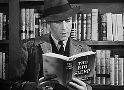 Humphrey Bogart as Philip Marlowe reading Raymond Chandler's The Big Sleep