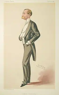 In September 1902 he attended the Congress of the International Union of Penal Jurisprudence at St. Petersburg.[21] He resigned his army commission for the final time in 1904, retaining his rank.[22] He retained his Parliamentary seat, and his characteristic interjection of a sarcastic 'Yah, yah!' into the opposition speeches continued until his death aged 59 on 7 April 1908.[23][24][25][26][27][28][29]