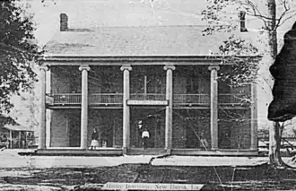 There is debate on the date of founding of the Howe Institute, some sources state it was opened in 1888,^ [1] and others state it was either 1890 or 1896.[3] The campus was located between Washington, Iberia, Madison, and Providence streets (present day 300 Iberia Street) in New Iberia.[4] The founding president/principal of the Howe Institute was Jonas Henderson,[3] and a sponsor for the school was the Union 6th District Missionary Baptist Association.[1] The school opening was financed by the St. Paul Congregational Church (now known as Church of Jesus Christ New Iberia) under the church leadership of Byron Gunner, with assistance of the American Missionary Association and with an endowment from philanthropist Peter Howe of Illinois.[5] Prior to moving to New Iberia, principal Jonas Henderson had been a professor and the chair of the mathematics and history departments at Leland University in New Orleans.[4]