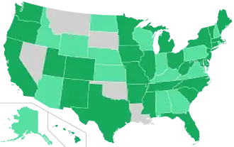 | States (& DC) | 51 | 29 (17) | 45 (48) | 37 (44) | 32 (48) | 25 (43) | 44 (48) |