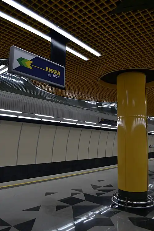 Hrushawka (Belarusian: Грушаўка; Russian: Грушевка) is a Minsk Metro station. It was opened on 7 November 2012, along with the metro stations of Mikhalova and Pyatrowshchyna.