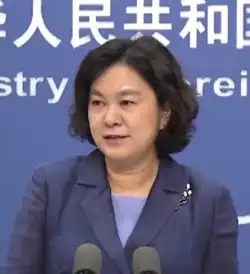 Hua Chunying (Chinese: 华春莹; born 24 April 1970) is a Chinese diplomat who has been serving as Vice Minister of Foreign Affairs of China since 2024. She most notably served as spokesperson of the Ministry of Foreign Affairs.