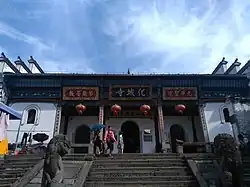 Huacheng Temple located at the foot of Mount Furong. It is the main and first temple of Jiuhua Mountains as well as bodhimanda of Kṣitigarbha. Now the existing halls and rooms were built in the Qing dynasty (1644–1911), the main buildings include Lingguan Hall, Four Heavenly Kings Hall, Mahavira Hall and Buddhist Texts Library.[2][3]