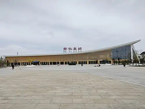 Huairen East railway station (Chinese: 怀仁东站; pinyin: Huáiréndōng zhàn) is a railway station in Huairen, Shuozhou, Shanxi, China.[1][2] It is an intermediate stop on the Hanjialing–Yuanping railway, on a section which is also used by the Datong–Xi'an high-speed railway. The station has two side platforms. On 1 May 2019, electric multiple unit services were introduced which cut the journey time to Taiyuan South railway station to under two hours.[3]