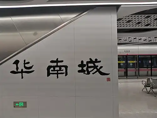 Huanancheng station (Chinese: 华南城站; pinyin: Huánánchéng Zhàn; lit. 'South China City station'), is a station on Line 10 of the Shenzhen Metro. It opened on August 18, 2020.[1]