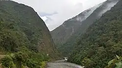 The Huancabamba runs in steep canyons for part of its course and with mountains on either side rising to more than 3,000 metres (9,800 ft) in elevation. A few kilometres of the river above Pozuzo is within the Yanachaga–Chemillén National Park.[4] The river is located in the ecological zone of the Peruvian Yungas, or Ceja de Selva ("eyebrow of the jungle"), the transition zone between the low jungles of the Amazon Basin and the Andes highlands.[5]