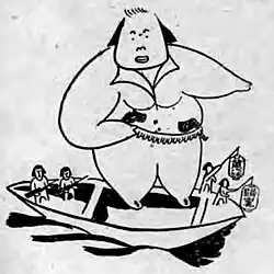 While in Taiwan, Huang sometimes went under the name Huang Baichi.[9] She was sometimes depicted in Taiwanese propaganda films as a national heroine. In 1959, the Japanese film studio Shintoho produced a film based on Huang's life, Queen of the China Sea (東支那海の女傑; Higashi shinakai no joketsu), in which she was depicted as a collaborator of the Japanese navy who falls in love with a Japanese soldier and ships much of her stolen booty off to Japan.[3] Huang was portrayed in the film by the Japanese actress Miyuki Takakura.[12] The film caused outrage in Taiwan and Huang hired a lawyer to sue the production company behind the film, Shaw Brothers Studio, for "slandering a national heroine". The Shaw Brothers swiftly sent representatives to apologize and were eventually forgiven by Huang after they donated 50,000 New Taiwan dollars to the "righteous compatriots of Dachen".[3]