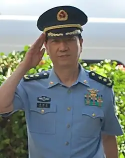 Huang Guoxian was born in April 1962 in Henan Province. He spent much of his career in the Chengdu Military Region Air Force, before being appointed Commander of the PLAAF Fuzhou Forward Headquarters in August 2005. In 2011, he succeeded Xu Anxiang as Chief of Staff of the Nanjing Military Region Air Force. In July 2013, he was promoted to Commander of the Nanjing MRAF, as well as Deputy Commander of the Nanjing MR, replacing Zheng Qunliang.[1][2] In February 2016, during Central Military Commission chairman Xi Jinping's military reform, Huang was appointed the Air Force Commander of the newly established PLA Eastern Theater Command.[3]