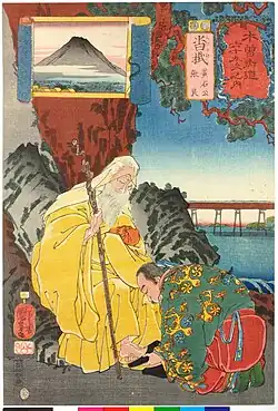 Huang Shigong (Chinese: 黃石公; lit. 'Yellow Rock Old Man') is a semi-mythological figure and Taoist hermit[1] who lived between the Qin dynasty and Han dynasty.[2] He gave Zhang Liang a treatise on military strategy called Huang Shigong San Lue (The Three Strategies of Huang Shigong) and the Lingqijing divination manual that allowed Zhang Liang to transform into an adept statesman and powerful war theorist.[3][4]