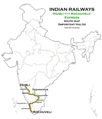 - ^ "12778/Thiruvananthapuram North (Kochuveli) - SSS Hubballi Weekly SF Express (PT) - Kochuveli to Hubli SWR/South Western Zone - Railway Enquiry". indiarailinfo.com. Retrieved 25 March 2025.