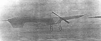 The Hubbard Monoplane was commissioned by Gardiner Greene Hubbard II of Boston.[N 1] The monoplane was constructed at the Beinn Bhreagh estate of Alexander Graham Bell in Baddeck, Nova Scotia, by John McCurdy and F. W. "Casey" Baldwin. The aircraft was the third to be built by the Canadian Aerodrome Company, and the first to represent an indigenous design, although loosely based on the Blériot XI.[1] The aircraft made two brief flights on 3 March 1910, flown by McCurdy.[2]