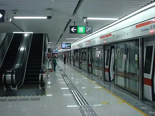 Hubei station (traditional Chinese: 湖貝站; simplified Chinese: 湖贝站; pinyin: Húbèi Zhàn; Jyutping: wu4 bui3 zaam6) is a station of Shenzhen Metro Line 2. It opened on 28 June 2011.