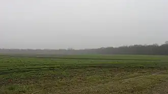 Hubele lies approximately 400 metres (1,300 ft) west of the Wabash River, 17 miles (27 km) above its confluence with the Ohio River, on land only minimally higher than the riverbank; the site may once have been a riverside sandbar. The site forms part of massive farm fields along the river; a levee on the eastern edge protects the site from flooding,[2]: 3 and a line of trees marks the site's northern edge.[2]: 7 Besides the levee, which may sit atop part of the site,[2]: 2 historical disturbances to the site have included the construction of a road on the southern edge and the placement of a drainage ditch; however, all of these influences have disturbed less than one-sixth of the site.[2]: 6