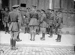 By the time of the Battle of the Marne 3rd and 5th Cavalry Brigades had been formed into "Gough's Command", an ad hoc cavalry force separate from Allenby's Cavalry Division.[50] On 15 September Gough's Command, with the addition of supporting troops, was formed into 2nd Cavalry Division[51] and he was appointed GOC on 16 September.[3] The two cavalry divisions were formed into a Cavalry Corps under Allenby (9 September), and reached the Belgian border by train on 11 September.[52]